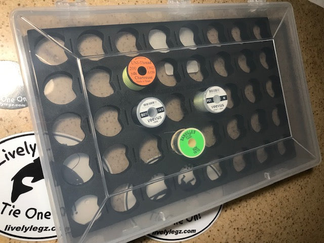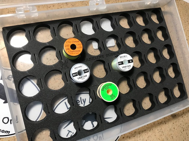 This spool stash box is the perfect way to store all of your spools of threads, tinsel, wires and other spooled materials. *No spools of materials come with this box.